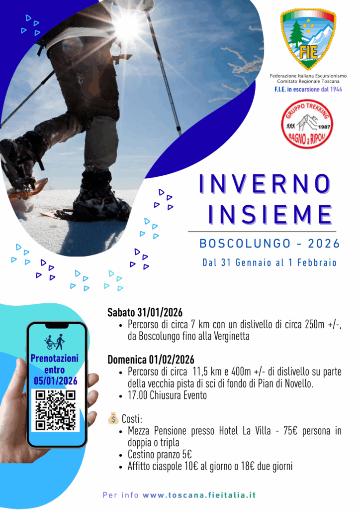 I giorni 31 Gennaio e 1 Febbraio,  Il  Comitato Regionale Toscana, in collaborazione con  l’Associazione Gruppo Trekking Bagno a Ripoli,  organizza il consueto raduno invernale delle associazioni.